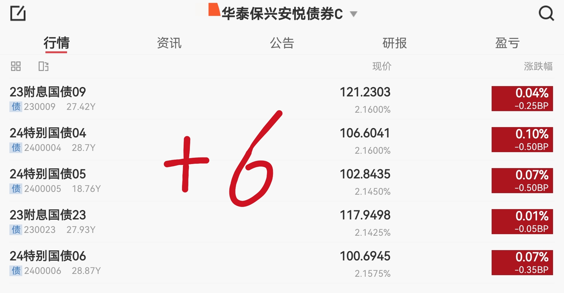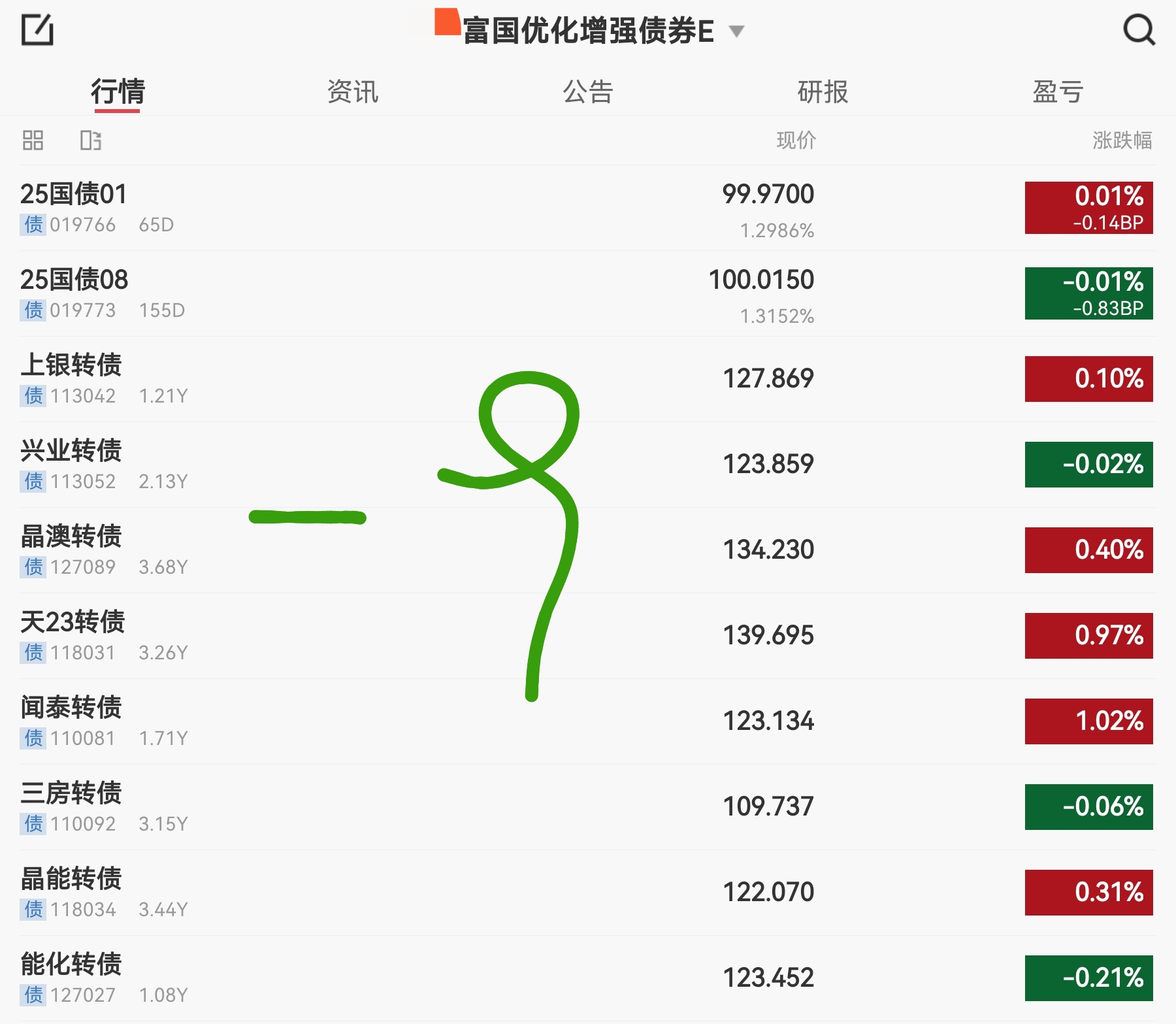 $长城短债C(OTCFUND|007195)$$国金惠盈纯债C(OTCFUND|006760)$$富国优化增强债券E(OTCFUND|018980)$$国金惠盈纯债C(OTCFUND|006760)$$广发双债添利债券E(OTCFUND|009267)$$南方中债7-10年国开行债券指数E(OTCFUND|013594)$$华泰保兴安悦债券C(OTCFUND|020741)$