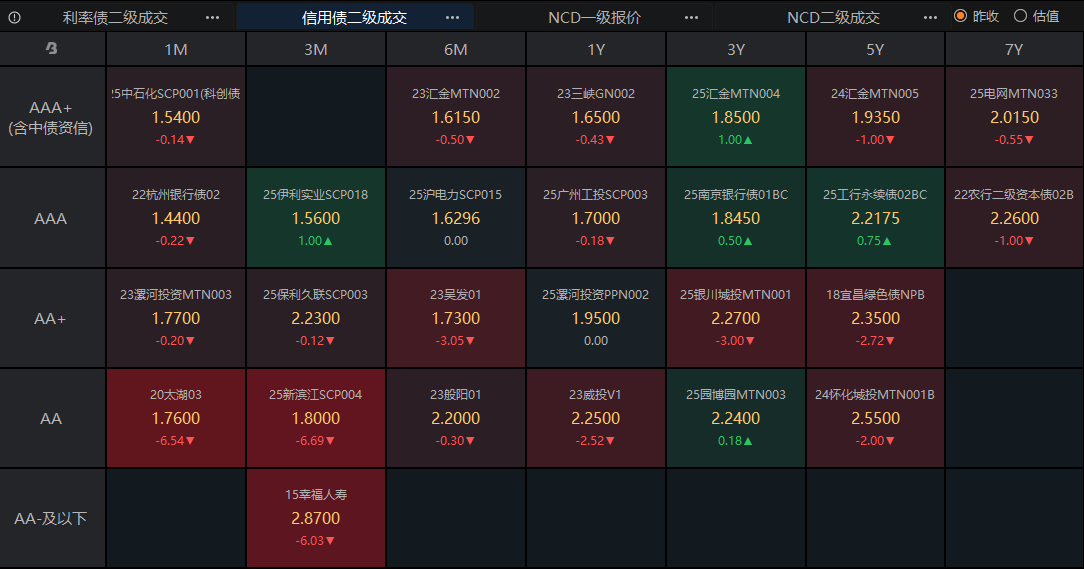 利率债行情还算稳定,不过长端债券涨幅比较小,10-30年期债券的收益率下行幅度都没有超过0.50bp。