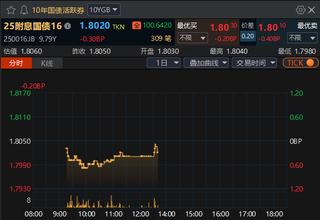 利率债盘中还是以窄幅震荡行情为主,250016的收益率持续保持在零线下方。