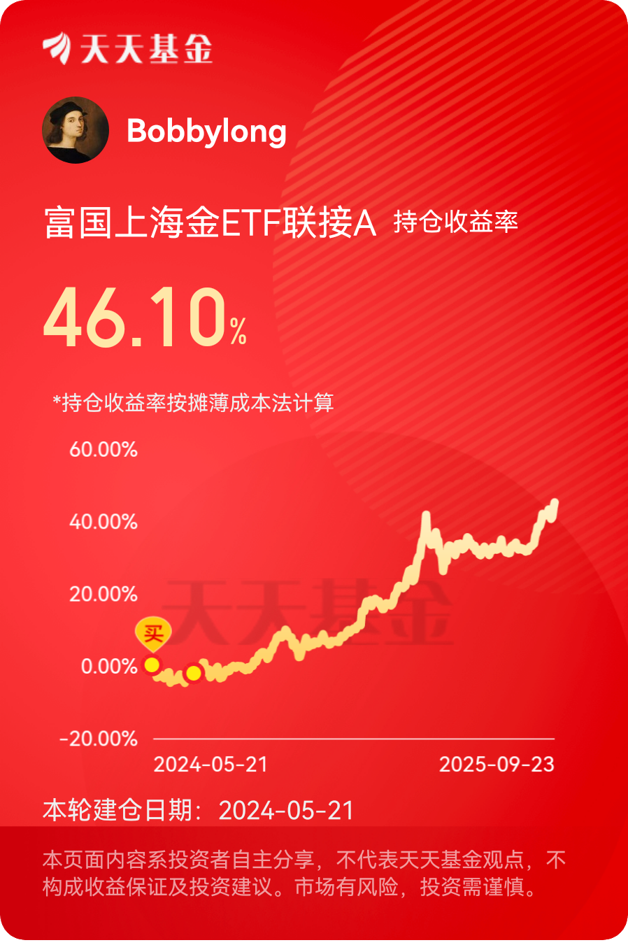 全球经济和国际环境都不太稳,以前大家觉得靠谱的美元,吸引力慢慢变弱,而黄金 “能当钱用、能避险” 的本事,又被重新看重了。$富国上海金ETF联接A$ #晒收益#