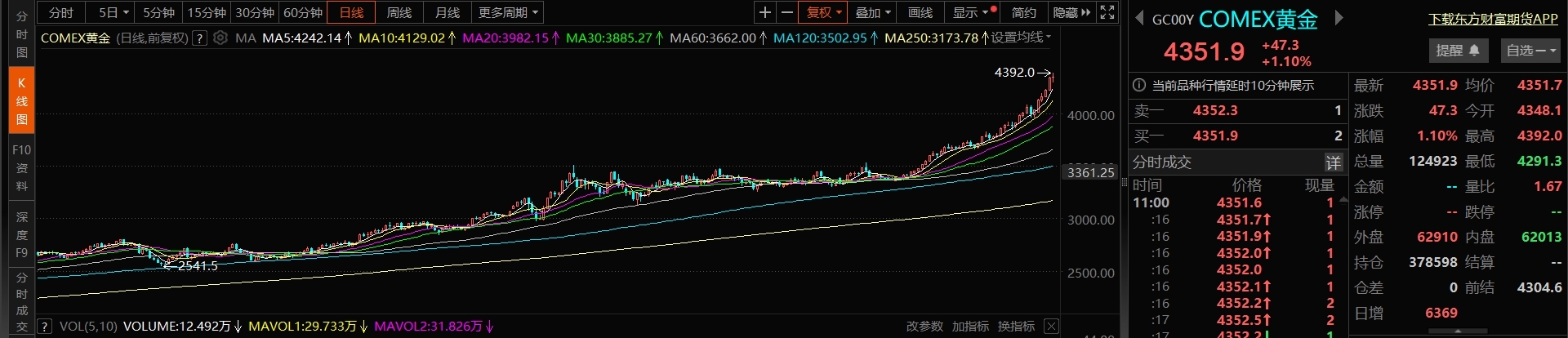 今天黄金再次创历史新高,COMEX金已经超过4300美元/盎司,开盘后建仓一笔$富国上海金ETF联接C$ ,后续还会不断地逢低加仓。
