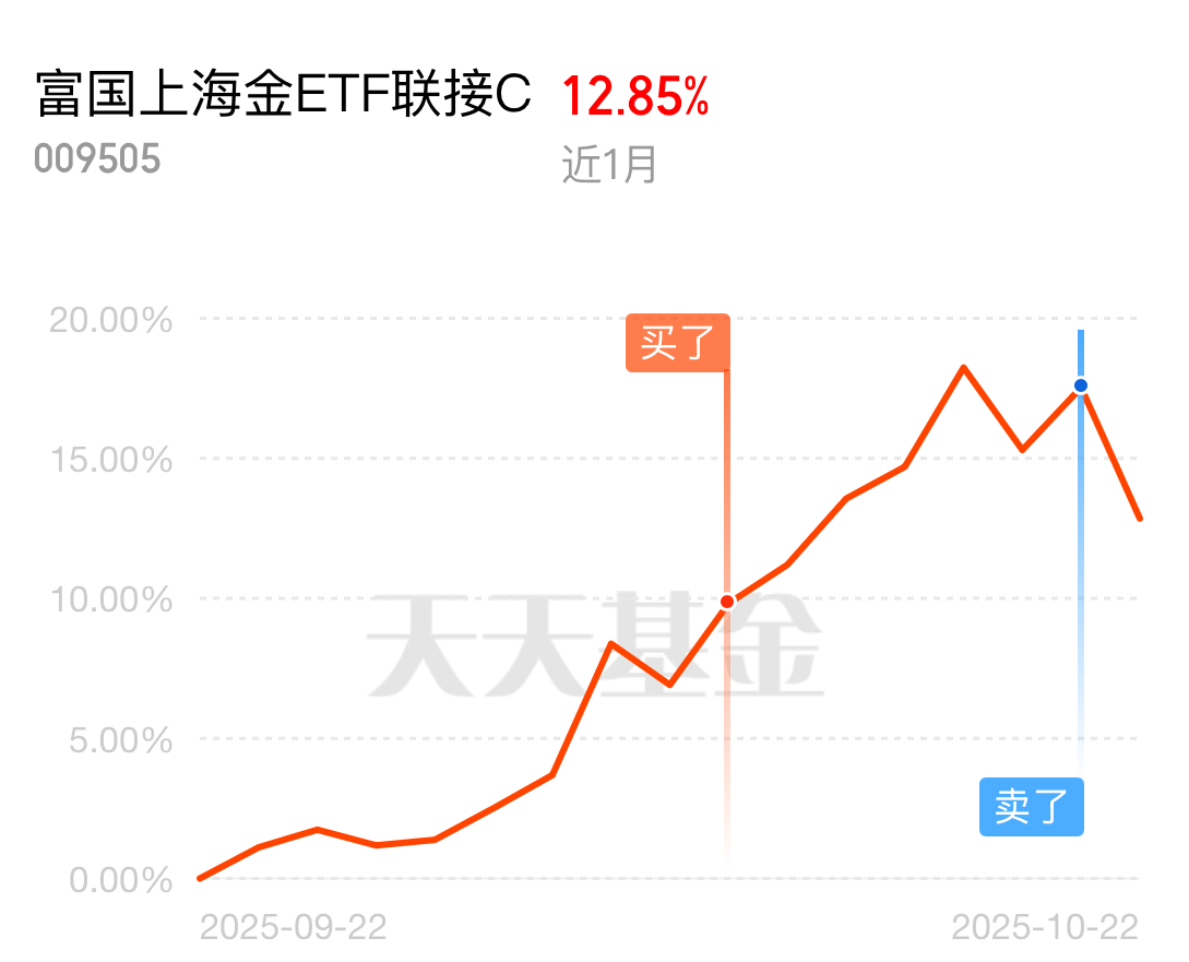 还可以,这次黄金算是在高点买对了,又这低吸高抛完美结束。下一波黄金还有做T机会,我会重新建仓!重点关注现货黄金跌到60日均线的买点机会!$富国上海金ETF联接C$