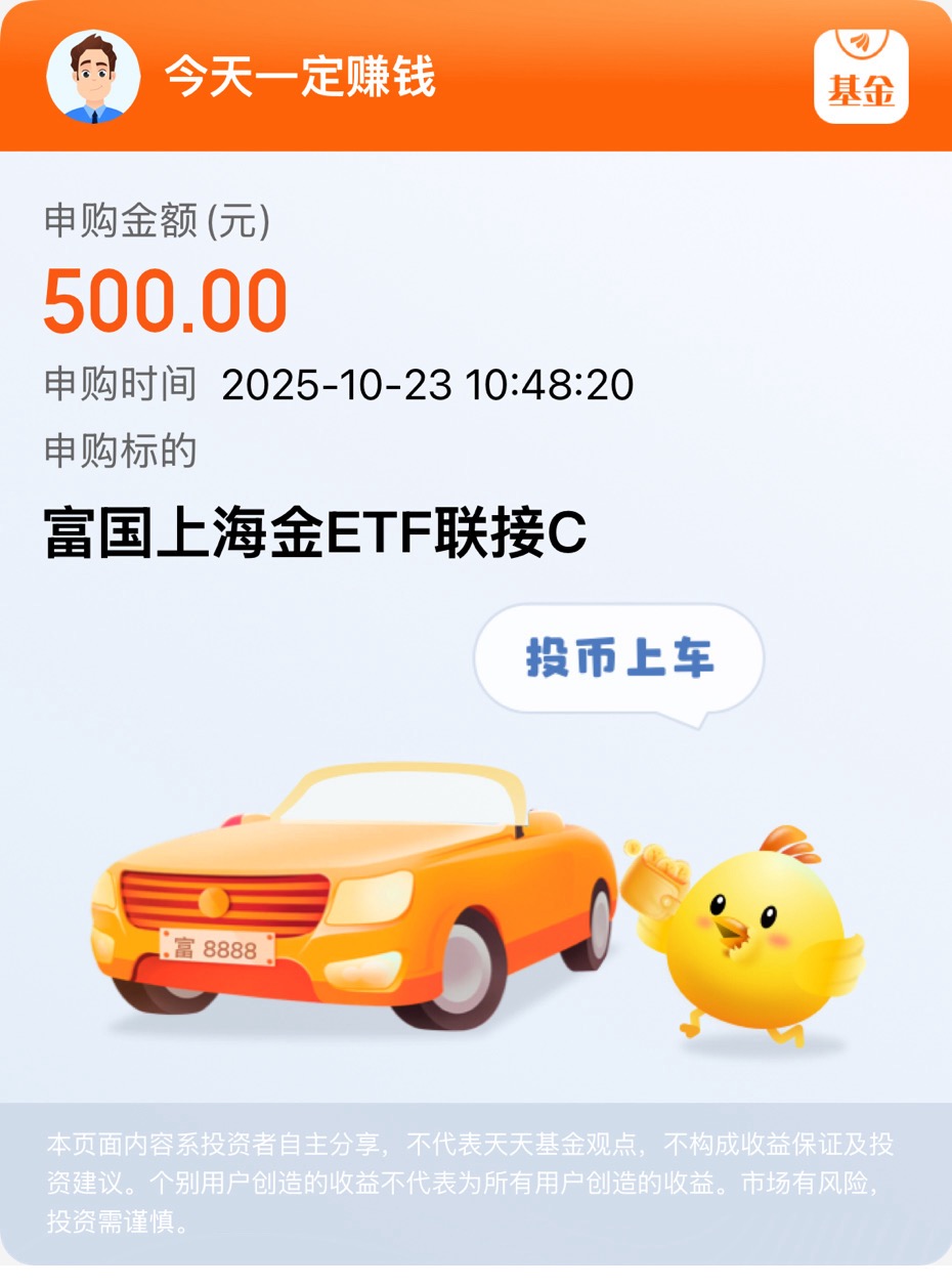 最近的黄金出现了些许回调,为之前的热度泼了盆冷水,但是我依旧长期看好,今天盘中再次加仓一次$富国上海金ETF联接C$ 。
