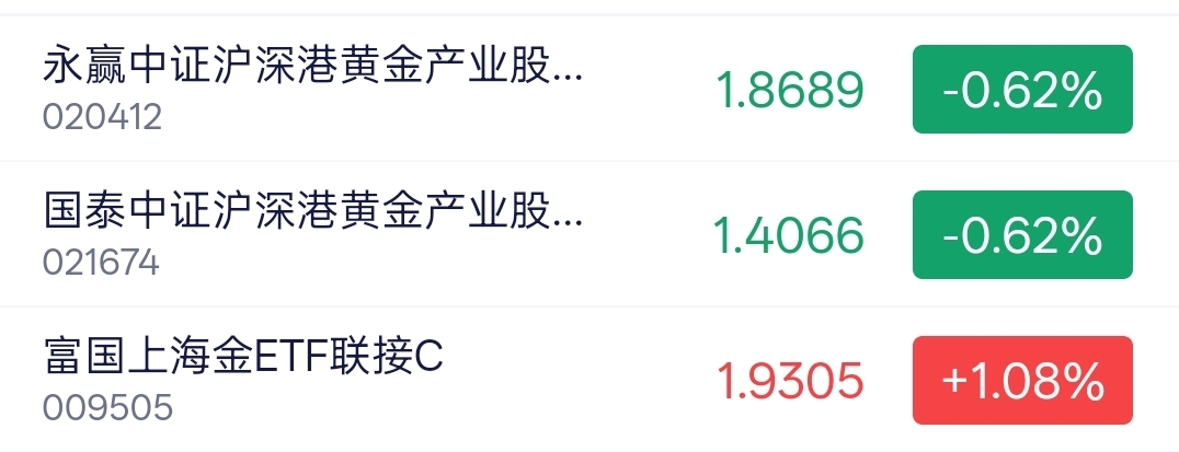 $永赢中证沪深港黄金产业股票ETF联接CS估值-0.62%,下周要加油哦