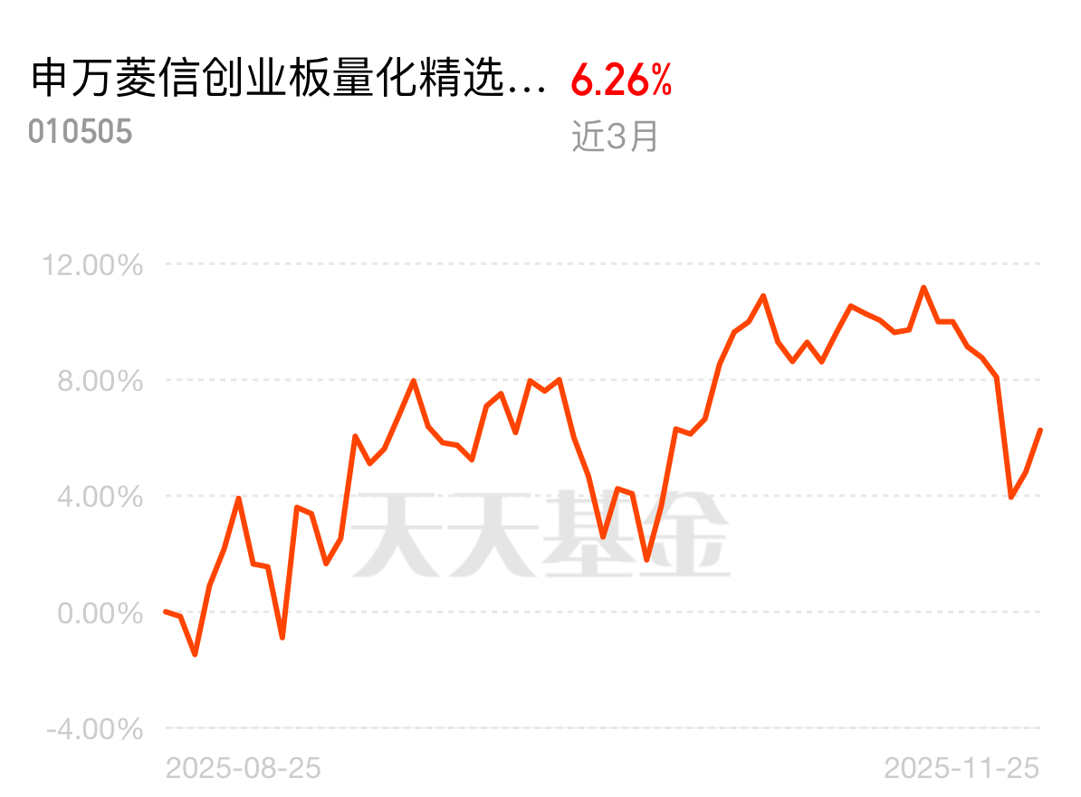 手里持有的基金没什么动静,不如换个强势赛道,创业板今天大涨太吸引人了。CPO和创新药带头领涨,申万菱信创业板量化精选股票C近3个月涨6.26%,人机智能并行选股,既能抓收益又能控风险,前段时间回调,现在上车正好。