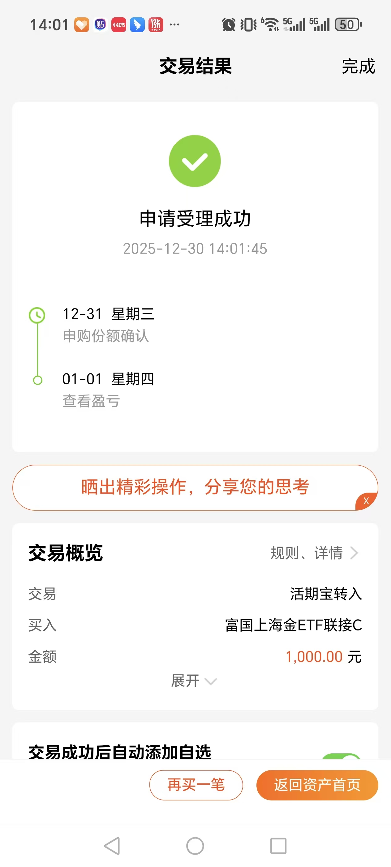 而且正好回踩下来也是一个回补的好机会,所以今天计划来对这只$富国上海金ETF联接C$ 做介入动作。
