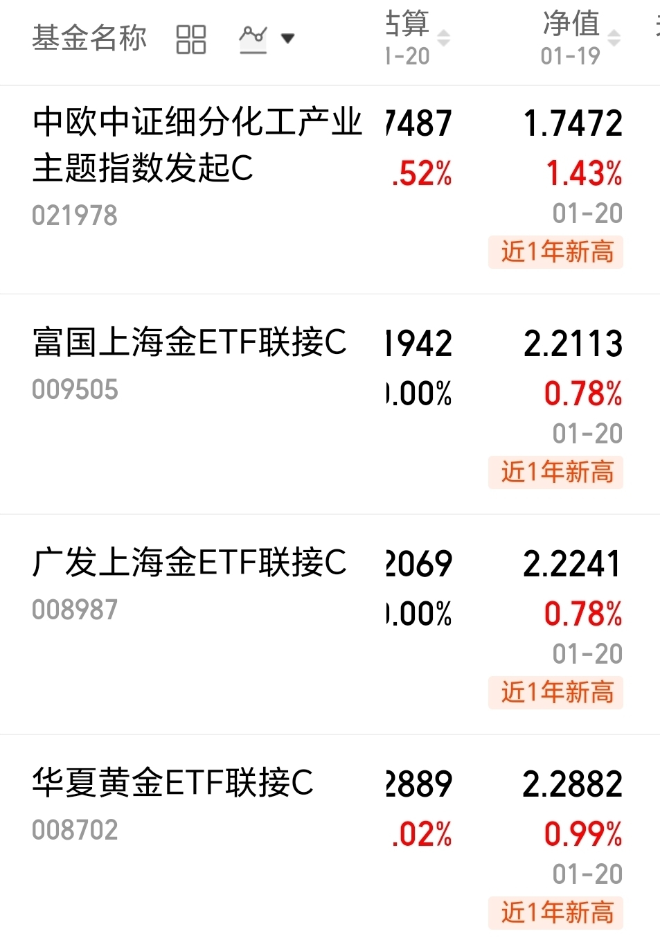 中欧中证细分化工产业主题指数发起式C 今天上涨1.43%;