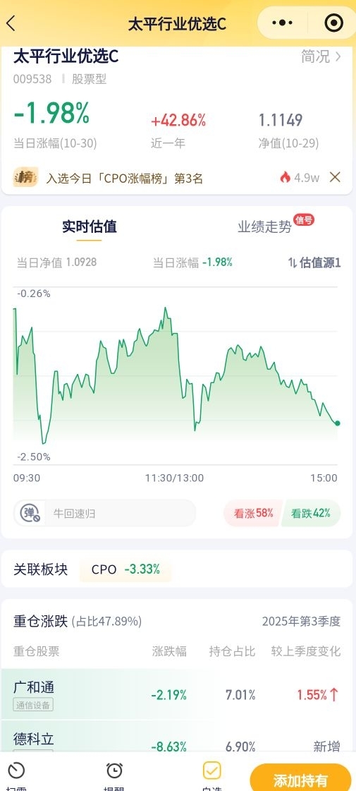 沪指跌了0.73%,CPO板块早盘跌超3%,后来拉回来一些,算是有惊无险 。而且资金在持续买相关ETF,看来是看好长期。两融余额创新高,资金面没问题,我觉得短期不用急于操作,耐心等方向。