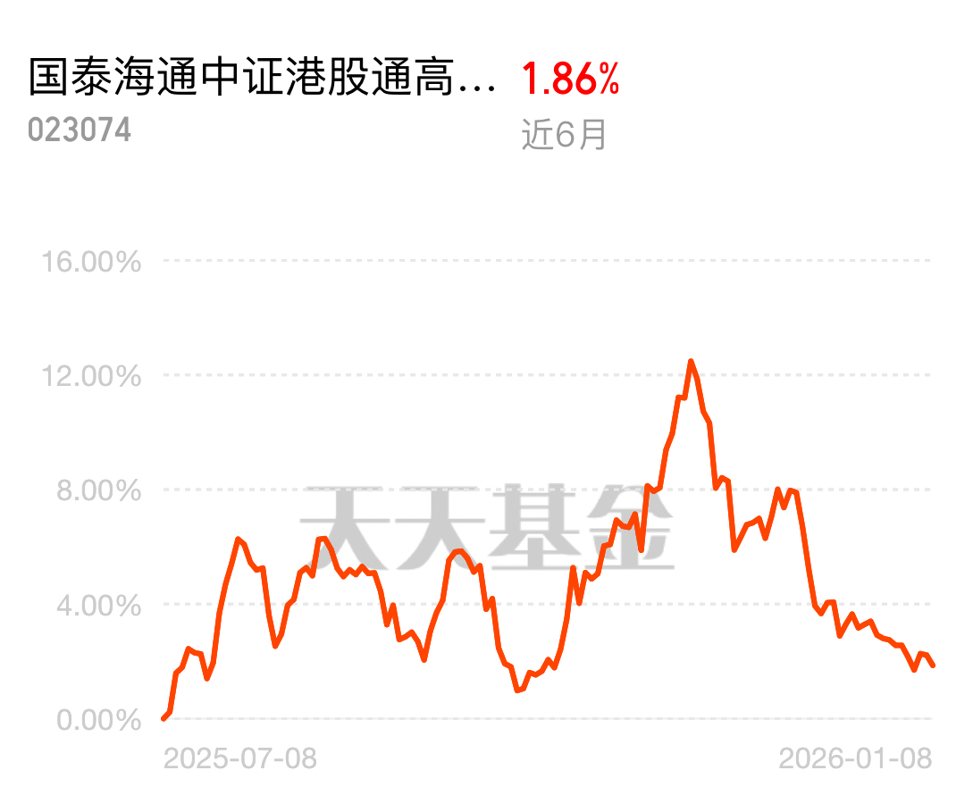 年末布局高股息,抓窗口。国泰海通中证港股通高股息投资指数发起 (QDII) C 近 6 月 1.86%,相对港股通税优 10%-20%,股息率更高,估值低,添保障。$国泰海通中证港股通高股息投资指数发起(QDII)C$