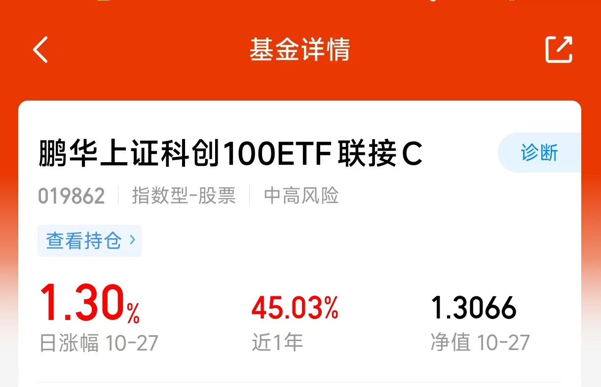 这市场,科创板今天又领跑了吧。$鹏华上证科创100ETF联接C$(019862)这个东西,直接挂钩科创板核心指数,指数涨它就涨,关系直接。最近这产品的势头,明显是受益于科创板整体的良好氛围。如果觉得直接投资科创板个股波动大,那么通过这样的产品来关注,可能是一种方式。#现货黄金跌破4000美元!缘何突然暴跌?#
