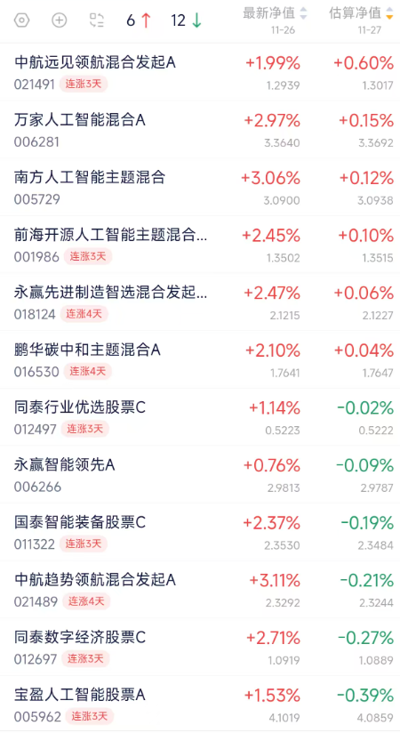 人工智能行业基金估值盘后快报:收益全览,关灯吃面