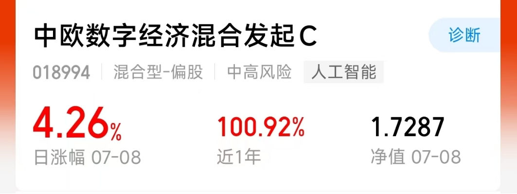 政策支持加上资本涌入,数字经济站上风口,AI是最具潜力的细分领域。$中欧数字经济混合发起C$(018994)近一年回报100.92%,在AI主题产品中表现优异。财通资管数字经济(017484)同期收益只有70%,差距越拉越大。投资要趁早,别等行情过半才后悔。#特朗普威胁50%铜关税!产业影响几何#