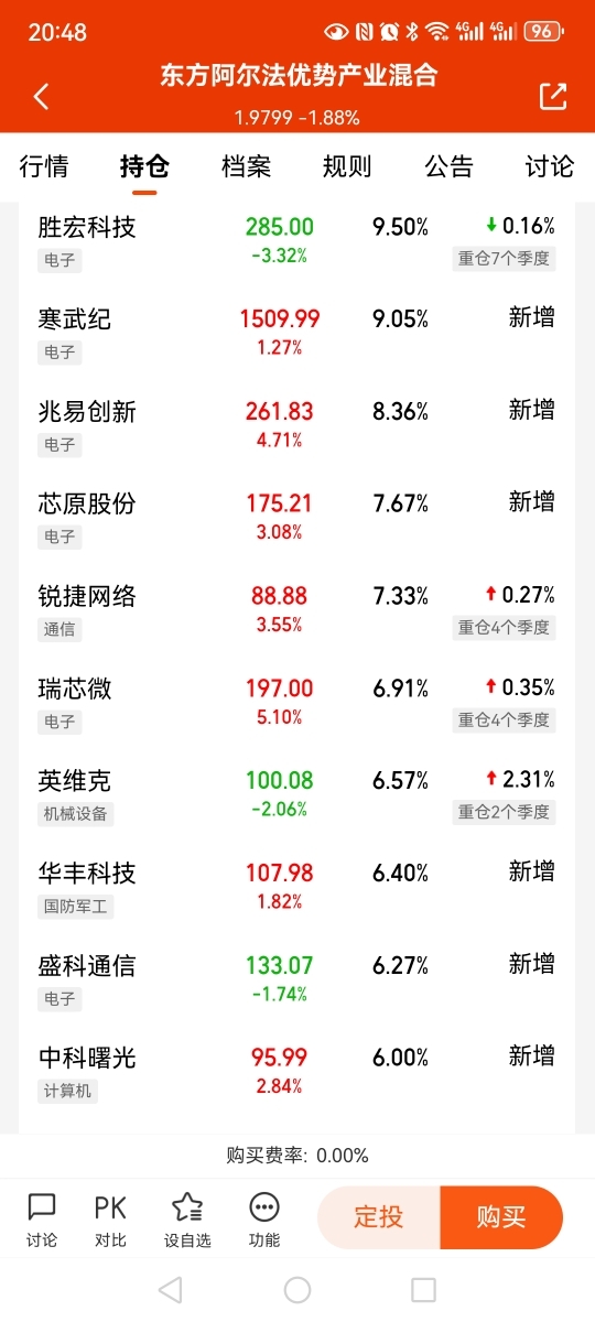 10个重仓股7个红的,净值-1.88%!经理你出来解释一下
