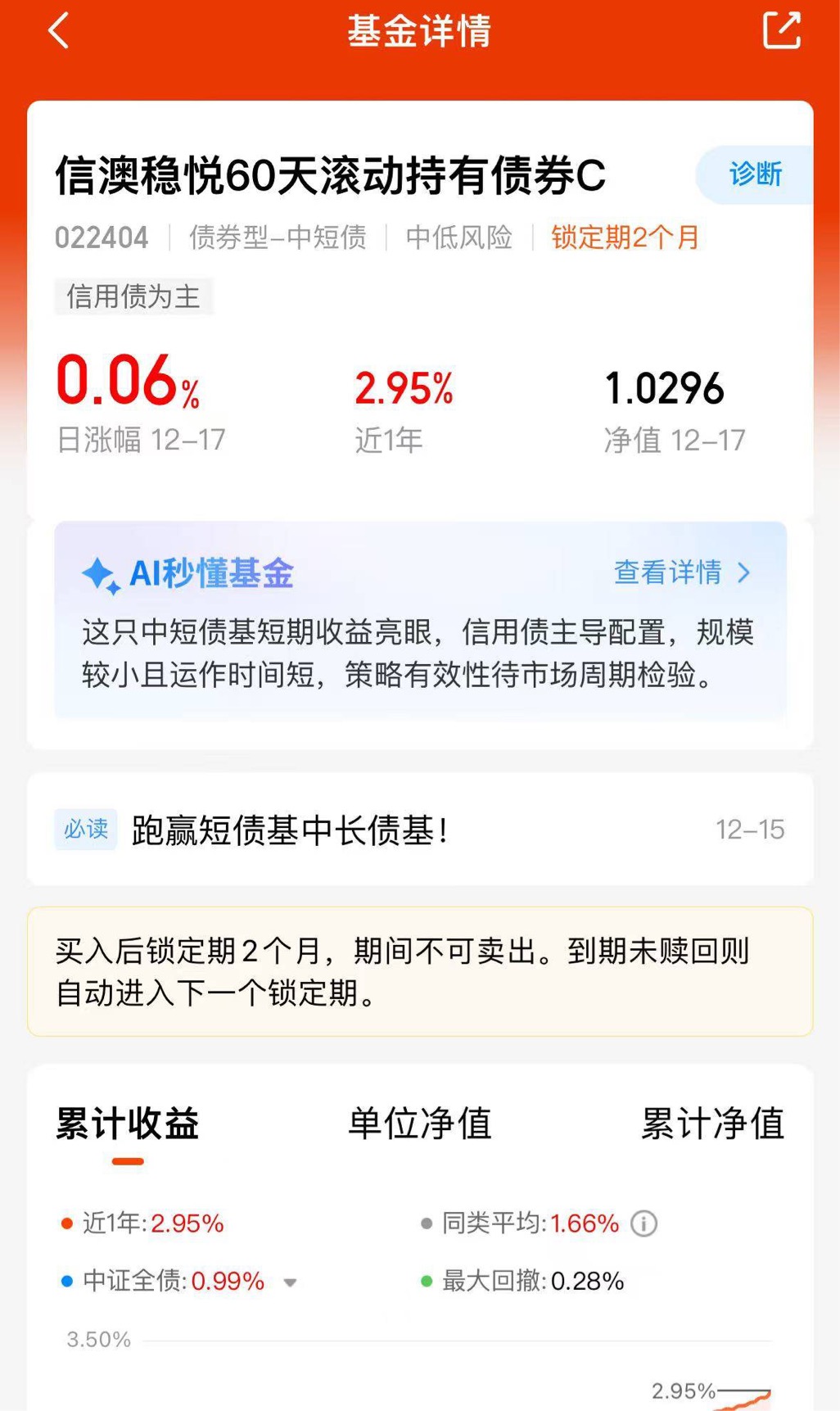找对债基少走弯路!信澳稳悦60天三月稳赚98个蛋,几乎日日正反馈,经验经理把控节奏,抗波动稳收益,闲钱生钱超省心