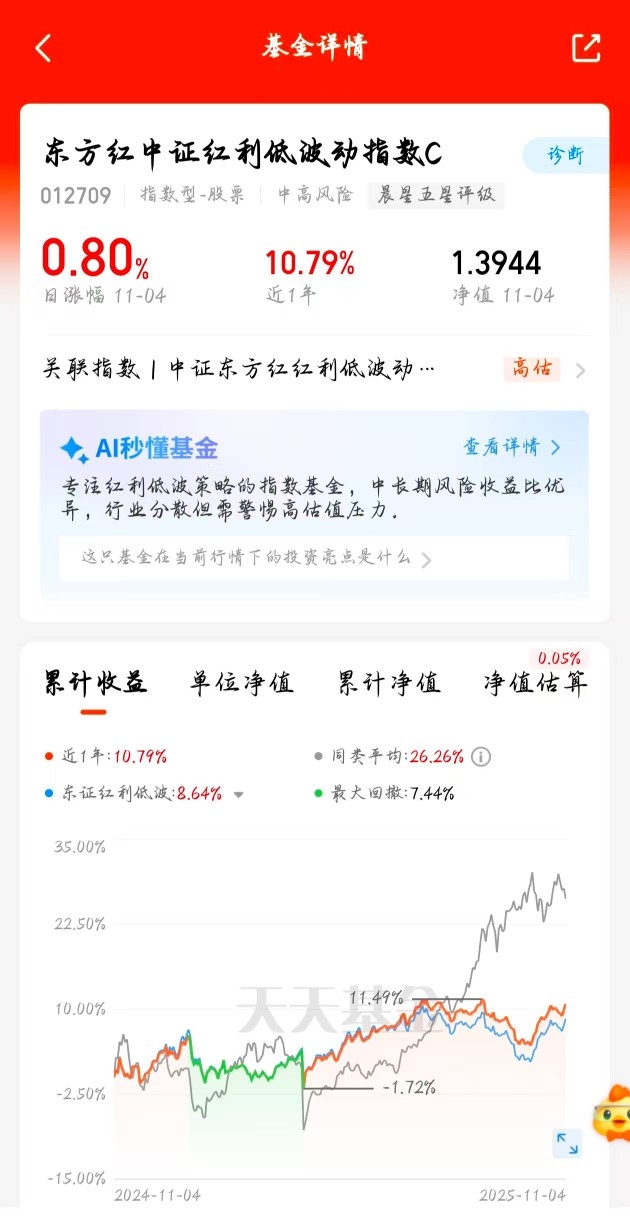 市场不确定性大的时候,我就配置东方红红利低波来增加防御,它的低波动性能降低整体风险,还能分享成长红利。