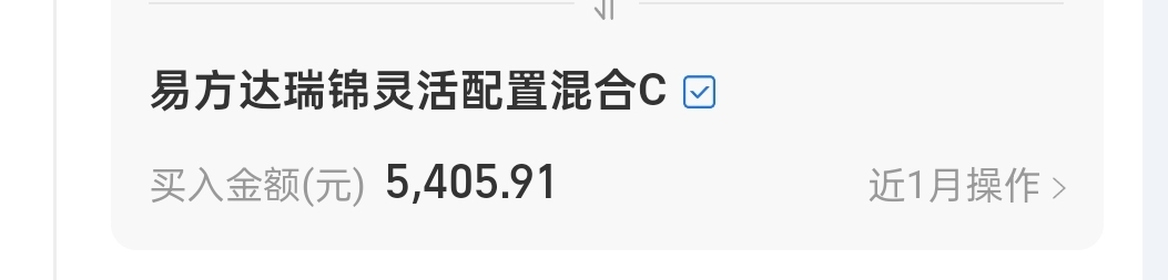$易方达瑞锦混合C$ +5000,理由:昨天收益35蛋,弹性真不错,行情好转,两天直接收益61蛋。今天大盘突破4010点,纯股波动大不敢去,我还是继续配置固收+放着,能靠里面少量的股博一博收益,收益走势都很不错,长期看,近6个月收益5.62%,近一年收益8.22%,收益非常满意,波动也在接受范围内,属于比较拿的住的类型。主要持仓54.35%的信用债和13.86%利率债当做稳健底仓,搭配23.74%股票和少量可转债波段获取收益,今年股市行情涨的不错,所以我一直在布局固收+,能够以债基打底平滑整体波动,又能靠少量股票博一博超额收益,我感觉挺不错的,今天建仓5000固收+放着了!