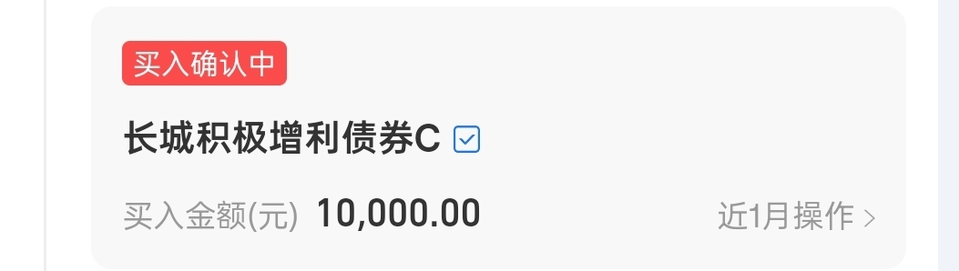 $长城积极增利债券C$ +10000,经过昨天的调整,盘面又涨起来了,趁着机会建仓波放着了。这只观察了挺久,弹性都比较大,今天大盘已经突破4173点了,慢牛行情,策略上布局些混合债放着,主要持仓以利率债打底,搭配了90.69%可转债增强整体收益,可转债兼具股性和债性,在股市上涨时可跟随上涨,获取一定的收益弹性,在股市下跌时又有债底保护,使得整体表现稳中有进,这种搭配还是挺香的,长期看,近1个月收益7.36%,近6个月收益15.47%,近一年收益26.12%,收益真是漂亮呢,对于想追求稳健,又想收益高些的,配置些固收+就挺香,今天可转债又涨的不错,建仓1万放着了!
