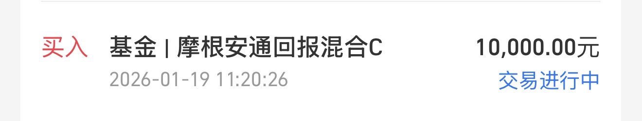 $摩根安通回报混合C$ 加10000。当前股债市场的波动较为频繁,我继续补仓股债均衡配置的固收+来优化一下我的个人持仓,今天继续补仓摩根安通回报混合C,它以43.91%的利率债打底,具备不错的流通性,同时配置了24.37%的权益+少量可转债辅助提升组合弹性,权益持仓覆盖了新能源、医药、周期、消费等多个方向。短期来看它的波动稍大,但是修复能力不错,近一年的收益率为16.60%。当前行情下,这种固收+策略既能通过债底缓冲部分波动,也能在市场反弹的时候保留一定的弹性空间,持仓体验蛮不错的,今天我继续递增10000元看长期。