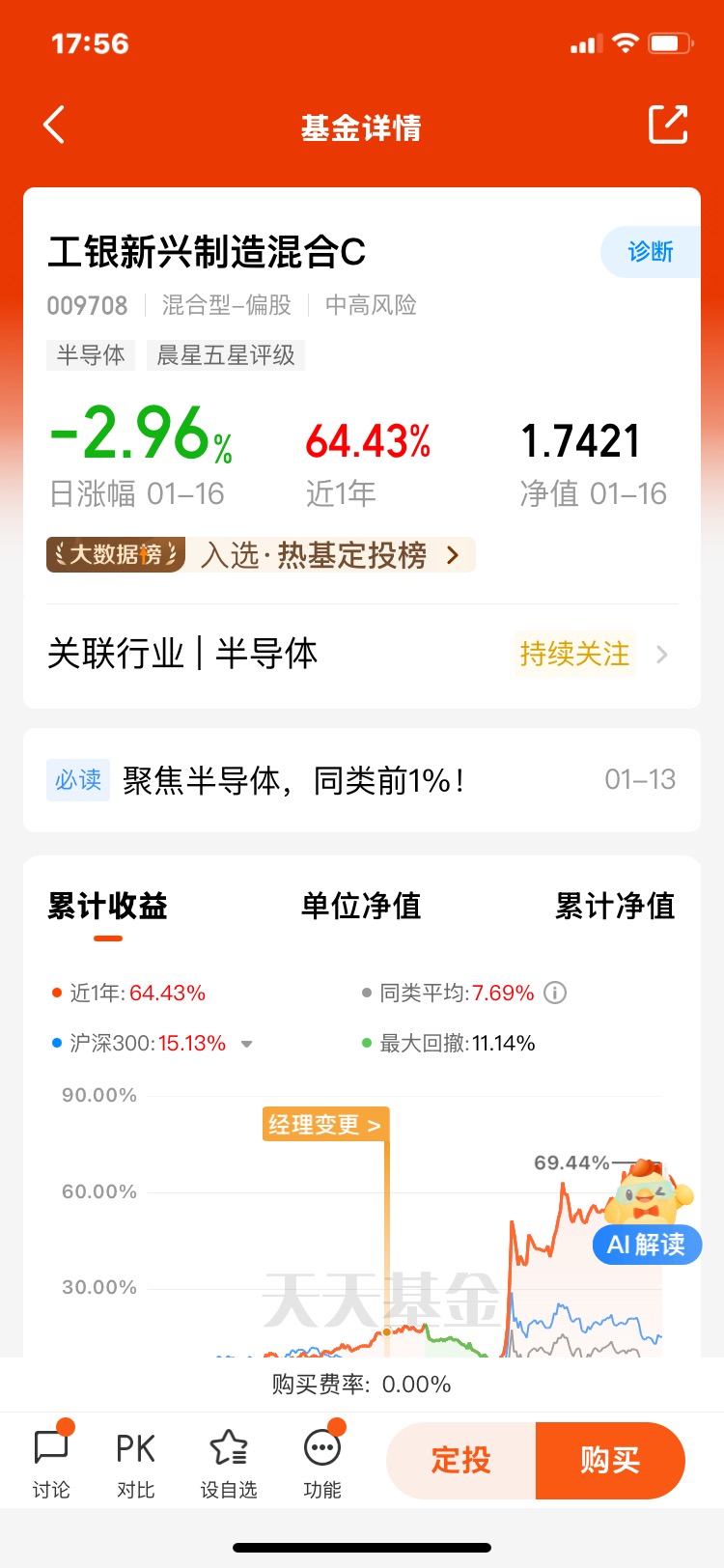 2. 科技创新领域:随着科技的快速发展,人工智能、5G、云计算等领域的投资机会值得关注。这些领域具有较高的成长性和潜力,是未来经济发展的重要方向。例如: $工银新兴制造混合C$