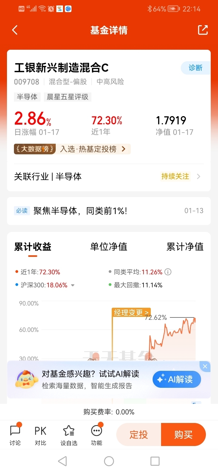 #2025我的新年投资# 打卡第16天,我看好2025年资本市场,看好科技,芯片半导体,人工智能,机器人,新能源投资方向。12月会议强调“实施更加积极有为的宏观政策”,涵盖实施更加积极的财政政策和适度宽松的货币政策,争取稳住楼市股市、稳外贸、稳外资,全方位扩大国内需求等,看好$工银新兴制造混合C$ 今天涨势不错,值得关注!@工银瑞信基金