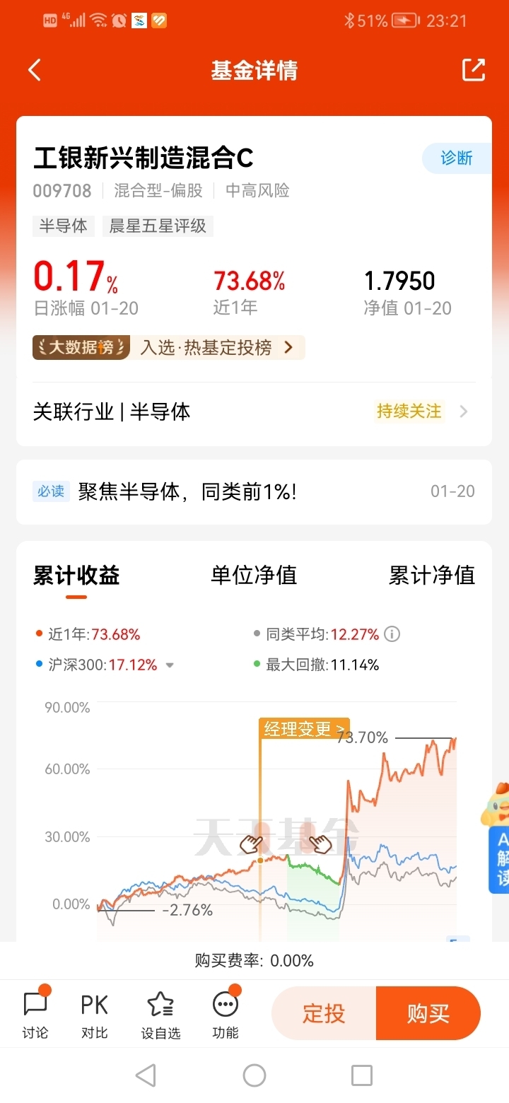 #2025我的新年投资# 打卡第20天,2024年四季度以来,随着多部门政策的合力驱动,权益市场开始活跃,债券市场也保持相对平稳的格局。尽管近期震荡回调,我还是看好新能源,人工智能,半导体等行业。看好$工银新兴制造混合C$ ,投资上述板块,这几天涨的不错,值得关注!@工银瑞信基金