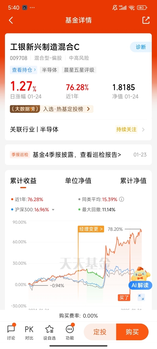 今天,我再一次选择了加仓工银新兴制造混合C。这并非是一时的冲动,而是基于对市场的深入分析和对这只基金的充分信任。首先,从基金的历史业绩来看,它在过去的表现相当出色,展现出了较强的抗风险能力和获取超额收益的能力。在市场波动较大的时期,它能够通过合理的资产配置和灵活的投资策略,有效地控制回撤,为投资者创造稳定的回报。