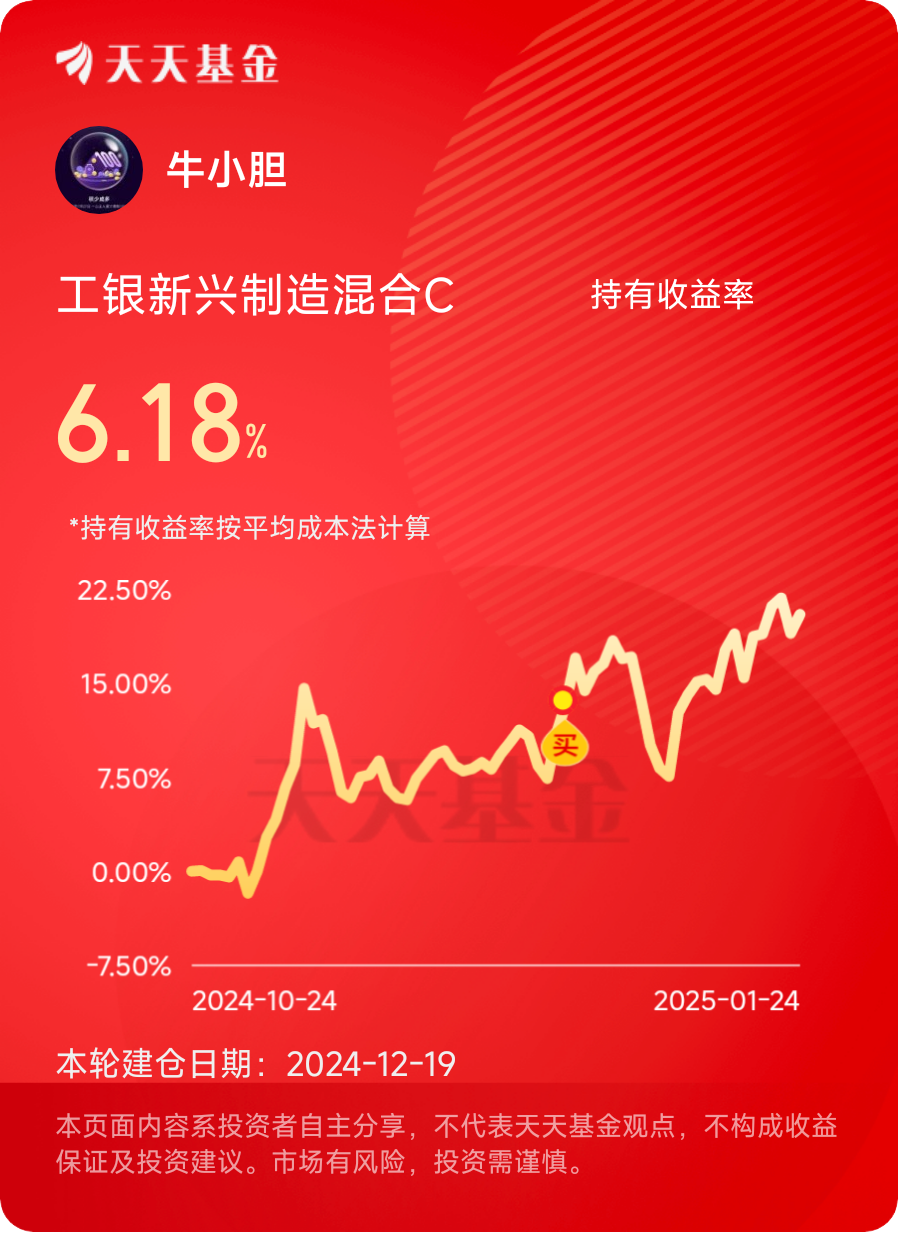在科技赛道全面下跌的今天,我选择加仓工银新兴制造混合C,是对科技未来发展的坚定信念,也是对长期投资理念的执着践行。我相信,风雨过后,必将迎来绚丽的彩虹,而那些在市场低谷时敢于布局的投资者,也将在未来的科技浪潮中收获丰硕的果实$工银新兴制造混合C$ #晒收益#