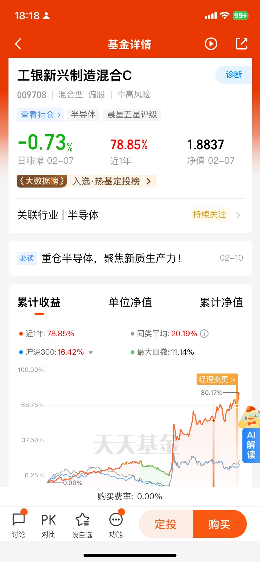 #现象级科技飞跃#打卡第五天,A股今天又涨了,明天估计还要涨。我非常信赖工银瑞信基金,目前定投持有多只工银瑞信基金产品,体验非常好!我定投的$工银新兴制造混合C$ 近一年涨78.85%,在4183只同类基金中排名前1%,表现非常优异!
