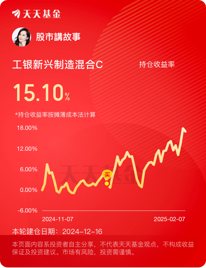 我非常信赖工银瑞信基金,一直坚持定投$工银新兴制造混合C$ 等6只工银瑞信基金产品,获得了非常好的收益回报和持有体验!将会继续定投并且长期持有!@工银瑞信基金 #晒收益#