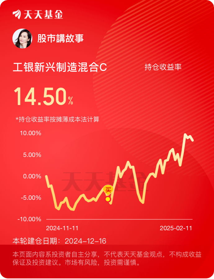 2月投资,今天A股、港股又涨了,非常开心。目前继续定投、坚定持有$工银新兴制造混