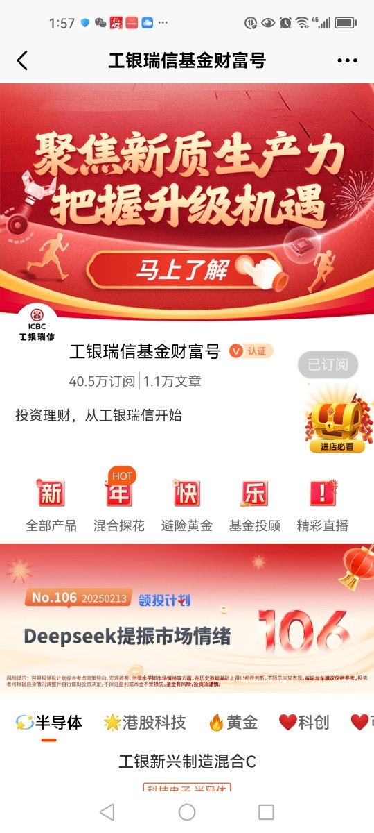 DeepSeek的突破进展是对AI产业逻辑重大利好,其以更低的成本和更小的算力规模,实现了足以匹敌国际顶尖AI模型的效果,未来或推动国内AI产业在全球范围内走出独立行情,也将利好半导体板块。@工银瑞信基金