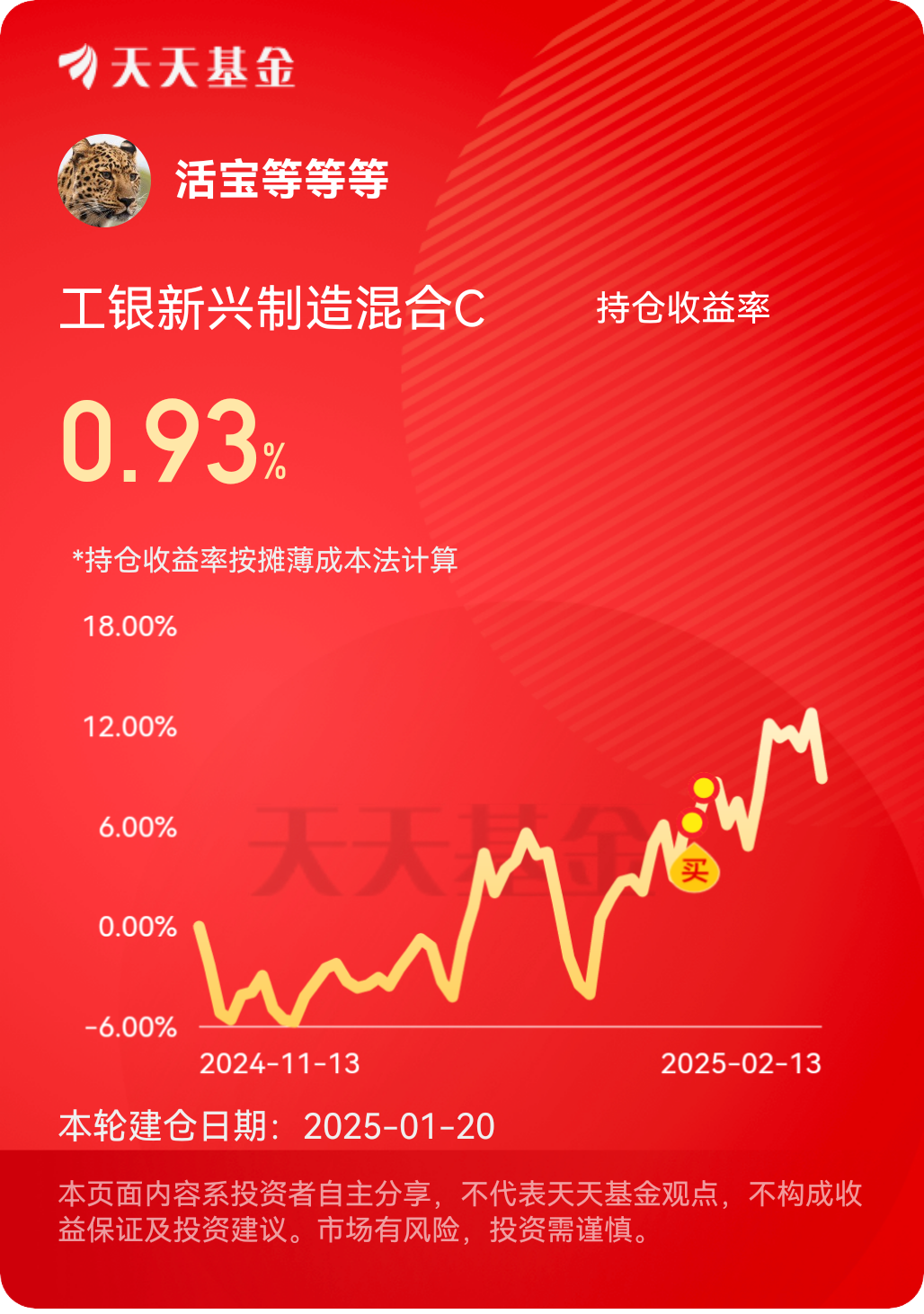 #晒一晒我的2月投资操作# “2月投资” 打卡第三天,从近期市场表现来看,工银新兴制造混合C基金在科技制造领域的布局显示出较强的增长潜力,尤其是在半导体、新能源等新兴制造行业的配置较为突出。尽管市场整体波动较大,但该基金通过精选个股和行业轮动策略,展现了较好的抗风险能力。个人认为,随着国内经济复苏和政策支持的持续加码,新兴制造行业有望迎来新一轮增长周期,工银新兴制造混合C的配置方向与这一趋势较为契合。不过,投资者需关注市场短期波动风险,建议结合自身风险承受能力,适度配置并保持长期视角。@工银瑞信基金