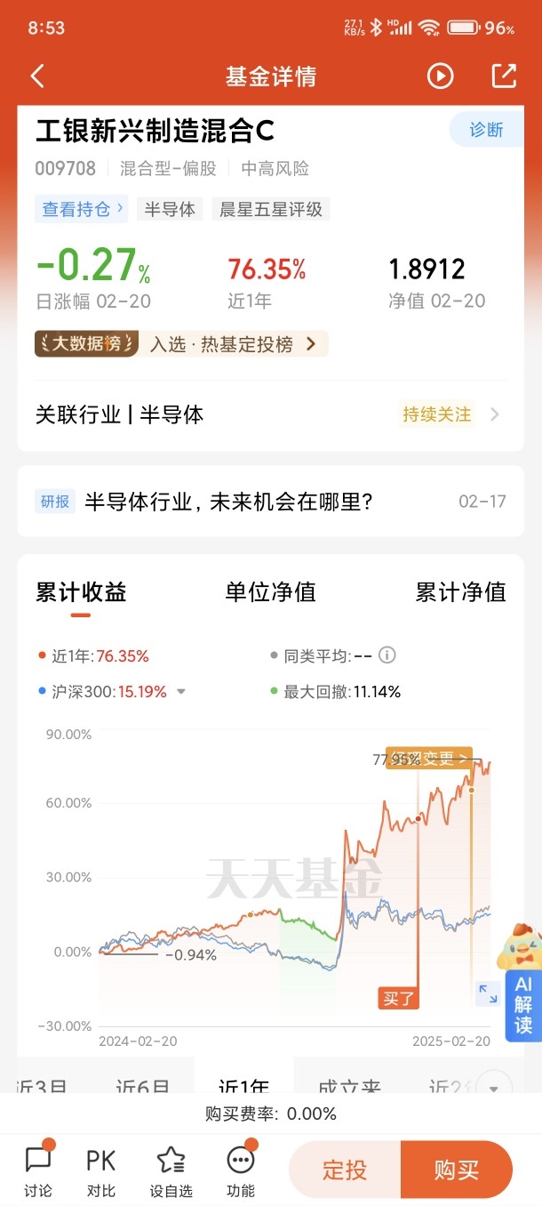 值得一提的是工银新兴制造C(009708)近一年投资收益超70%,远超同类平均和沪深300指数。基金持仓主要集中在TMT板块,人工智能和半导体,公共事业。基金由张宇帆、马丽娜共同管理,两位都具有丰富的投资经验,张宇帆属于交易型选手,会做风格择时,超额收益也很明显,感兴趣的同学可以择机关注布局!