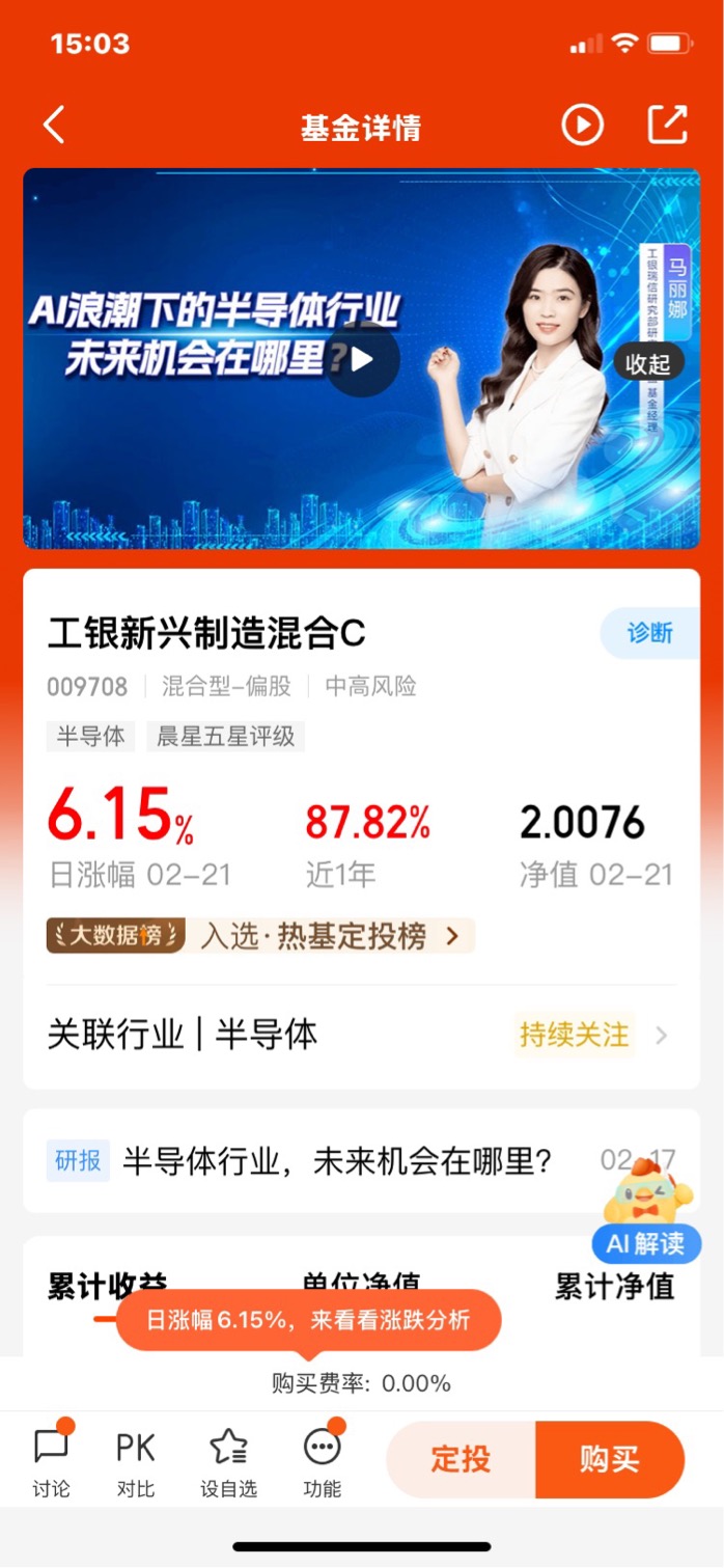 从硬件设备到软件开发,从数据服务到应用服务,整个AI产业链都有望在DeepSeek的推动下迎来新的发展机遇。我们可以看到,不论是云计算公司、芯片制造商还是数据分析公司,都在积极布局AI产业链的各个环节。这无疑为投资者提供了更多的选择和机会。通过观察和研究市场趋势,我选择了$工银新兴制造混合C$等主投科技行业的基金进行布局,期望能更好地把握科技发展的红利。当AI技术从概念转向落地时,个股投资难度陡增。工银新兴制造混合C通过专业团队、组合投资、动态风控,为投资者提供“一基覆盖AI全产业链”的解决方案。其15%以内的可控回撤、40%+的年化收益潜力,在科技主题基金中展现出极佳性价比。 基金经理深耕科技赛道超10年,两次穿越牛熊(2015年回撤控制行业前10%,2022年科技股暴跌期收益排名前15%),擅长在产业拐点前布局。