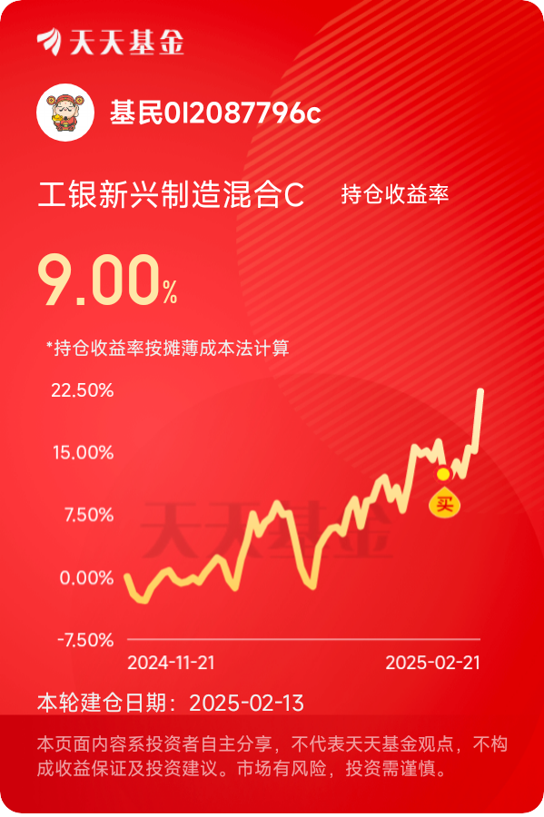 总之,DeepSeek的出现为半导体行业带来了新的发展机遇,工银新兴制造混合C基金凭借其专业的投资团队、精准的投资策略、出色的历史业绩和低费率高流动性的特点,为投资者提供了一个分享这些机遇的良好平台。在未来的投资道路上,让我们携手工银新兴制造混合C基金,共同开启财富增值的新篇章。#晒收益#