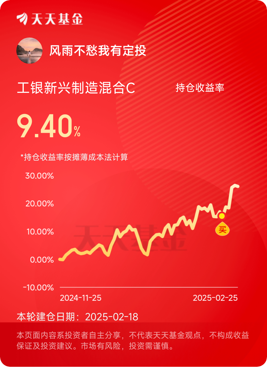 #现象级科技飞跃#打卡第21天,DeepSeek凭借高效的算法优化能力展现出独特的优势。在处理大规模数据任务时,它能够迅速对算法进行调整和优化,大大提高数据处理的效率和准确性。这种能力在大数据分析、智慧城市管理等诸多领域有着广泛的应用前景。在智慧城市建设中,通过对海量城市数据的高效分析,可以实现交通流量优化、能源调配等功能。这促使众多从事相关技术研发和应用推广的企业迅速崛起,也使得围绕DeepSeek展开的投资机会如同繁星般闪烁,涵盖从基础技术研发到上层应用的各个环节。工银新兴制造混合基金将资金聚焦于新兴制造这一领域。新兴制造包含众多新兴子行业,像光伏制造,我国光伏产业在全球的市场份额逐年上升,技术优势明显。政府加大对新兴制造产业的创新研发投入补贴力度,还积极推动国际合作,助力企业在全球市场竞争中崭露头角。新兴制造行业内不少企业具有较高的成长潜力,尽管部分企业股价近期有所波动,但市盈率仍处于合理区间。以光伏制造中的新型电池片企业为例,其研发的新技术在提高光电转换效率方面有重大突破,随着市场认可度的提升,盈利前景广阔,当前投资这只基金是顺应产业发展趋势的明智选择。