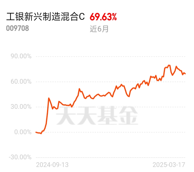 再看工银新兴制造混合C,截至2025年3月14日,其单位净值为1.9448元,近1月涨幅为5.66%,近3月涨幅为16.34%,显示出较强的反弹能力,不过在2024年四季度的最大回撤达到 - 11.14%,也体现出市场波动对它的影响 。它主要投资于新兴制造领域,前十大重仓股包括海光信息、寒武纪、兆易创新等,合计占比60.13% ,这些标的多处于半导体、人工智能等科技热门领域,对基金净值起到重要支撑作用。@工银瑞信基金