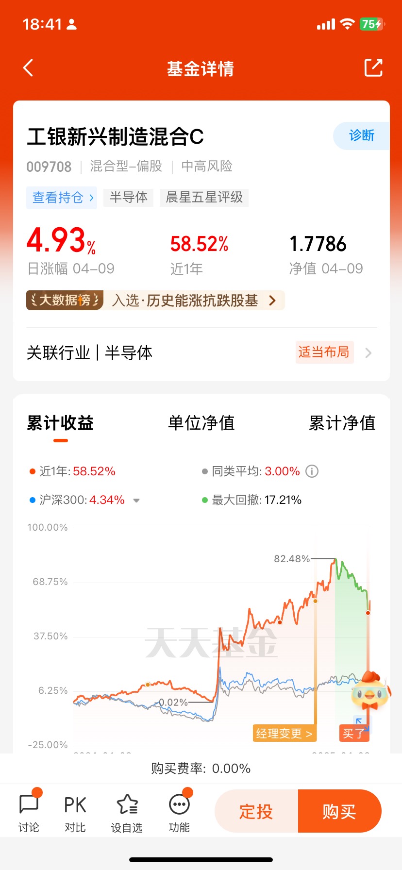 今天市场又涨了,连续三天上涨!$工银新兴制造混合C$聚焦半导体产业链,近一年涨5