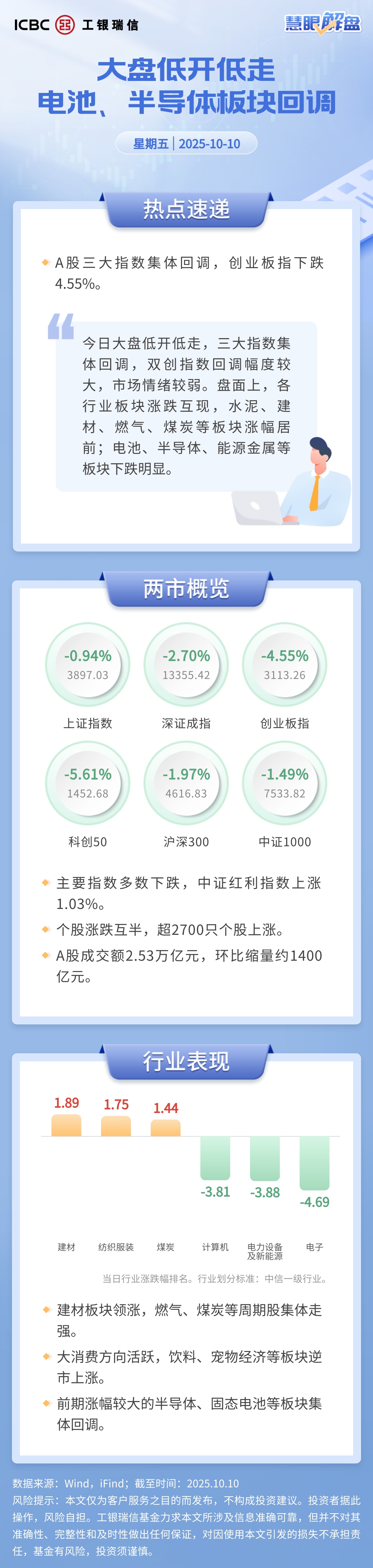 【慧眼解盘】大盘低开低走 电池、半导体板块回调