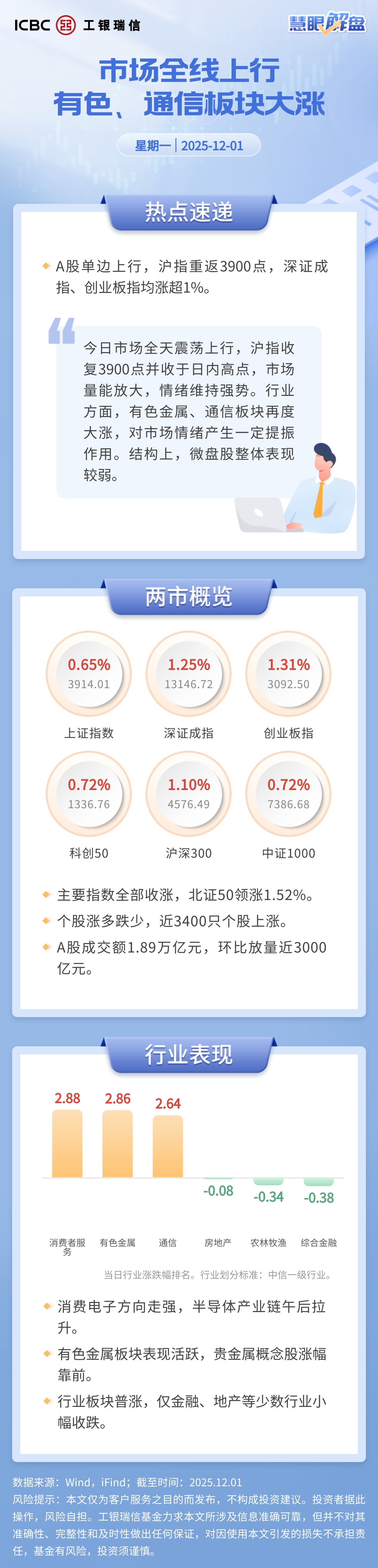 【慧眼解盘】市场全线上行 有色、通信板块大涨