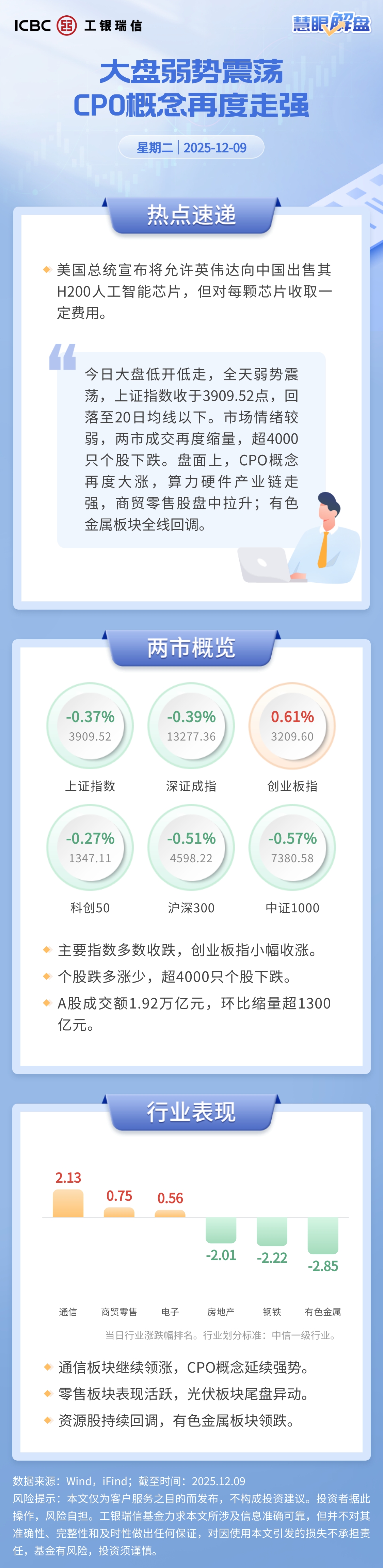 【慧眼解盘】大盘弱势震荡 CPO概念再度走强