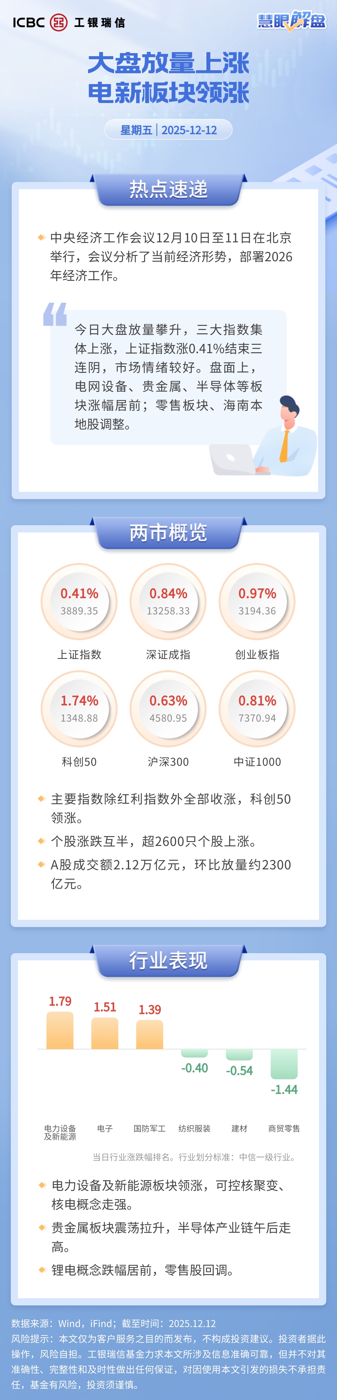 【慧眼解盘】大盘放量上涨 电新板块领涨