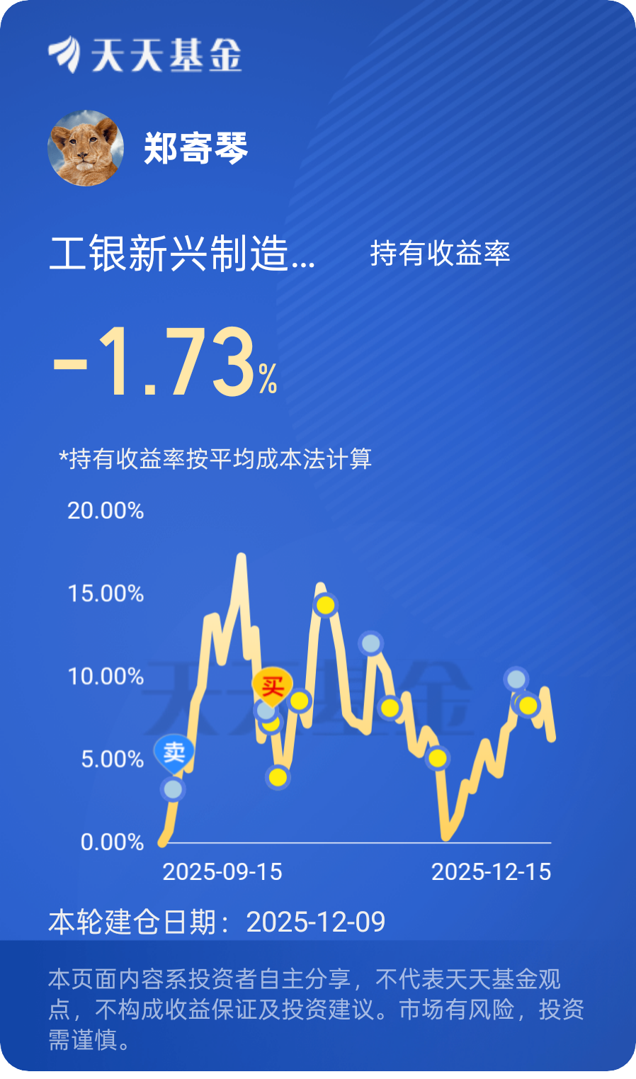 我手里一直持有$工银新兴制造混合C$ ,这只基金刚好重仓了兆易创新这类存储芯片相关标的,太合我意了。最近明显能感觉到存储芯片在涨价,库存都快见底了,供需缺口短期补不上,AI 服务器、AI 手机又一个劲催需求。虽然短期可能跟着市场波动,但对我们普通人来说,不用纠结每天的涨跌,拿着基金分散风险就好。我打算继续持有,要是后续有回调,还会小额定投加仓,毕竟这种由基本面驱动的行情,比盲目追热点靠谱多了。@工银瑞信基金 #晒收益#