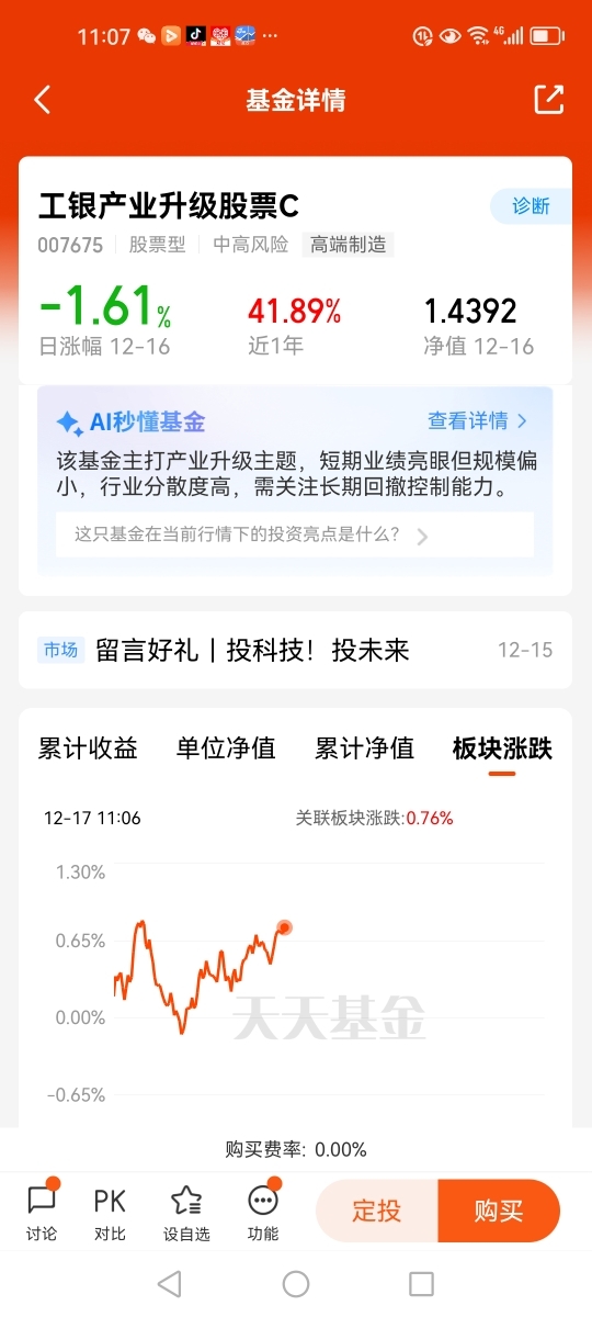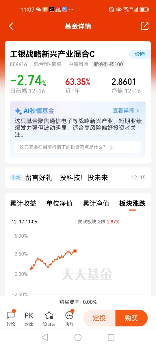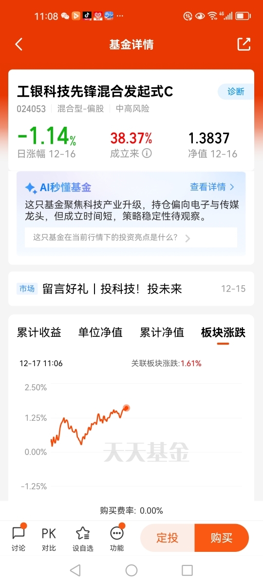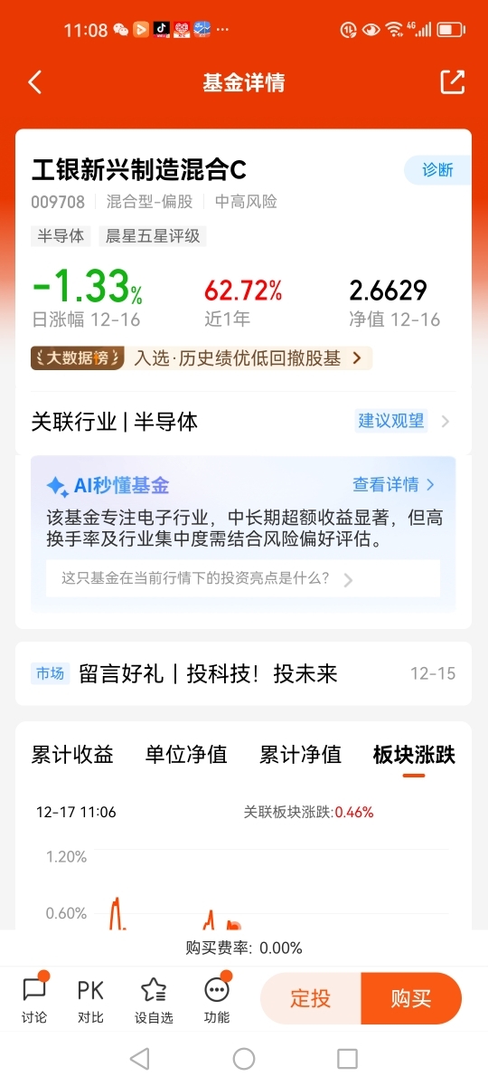 #投科技投未来#打卡第五天。12月16日,A股市场弱势回调,半导体板块继续承压。主要投资于半导体板块的$工银新兴制造混合C(009708)$下跌1.33%。消息面上,12月15日晚间,某AI芯片龙头发布公告称,公司拟使用母公司资本公积27.78亿元用于弥补母公司累计亏损。本次公积金弥补亏损以公司2024年末母公司未分配利润负数弥补至零为限。此外,科创板将再迎一名GPU大将,芯片板块再度壮大。某公司12月15日公告,公司股票将于2025年12月17日在上海证券交易所科创板上市。