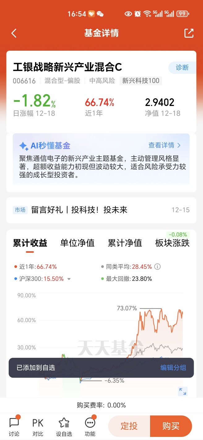 5. 费率更友好,适配普通投资者: 作为C类份额,0申购费,仅收0.4%年销售服务费,且持有满30天免赎回费,对比多数科技类混合C基金0.5%及以上的年销售服务费,能有效减少投资成本损耗。不管是中短期波段操作还是长期持有,费率性价比都高于同类不少。#2025年 你的投资战绩如何?# #存储巨头管理层:“好日子还在后头”# #2025即将收官 明年怎么投?# #挖掘超额收益# #【跨年坦白局】提问金梓才、陈果# #青禾创作计划#