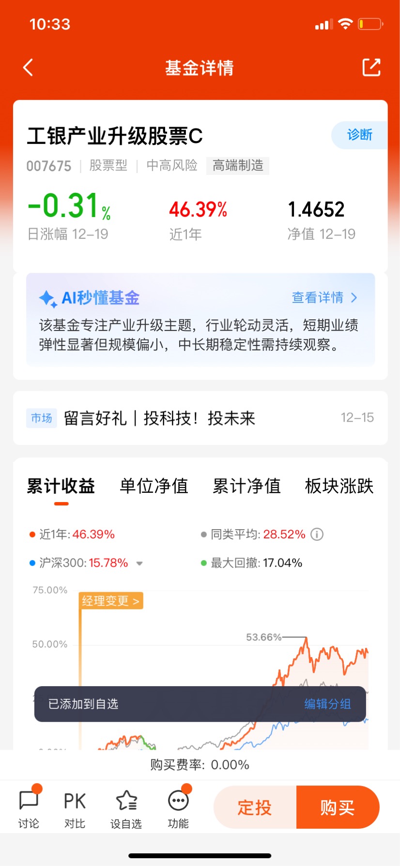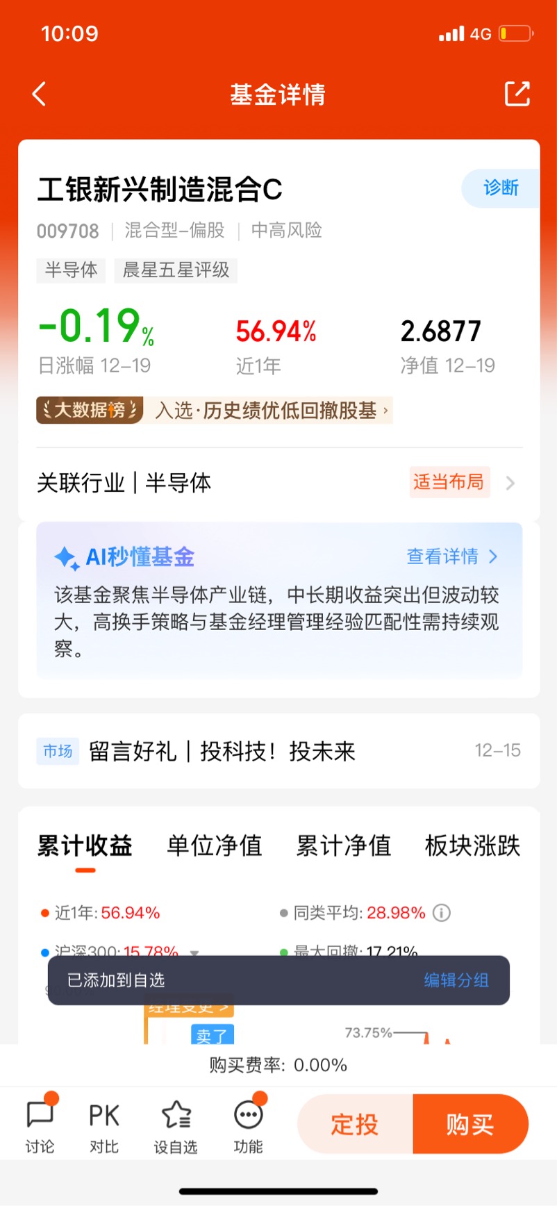 总结来说,我认为科技仍是中长期值得重点配置的方向,而半导体作为硬科技的核心环节,具备高景气与高弹性特征。$工银新兴制造混合C$ 以其清晰的半导体定位、出色的历史表现与专业的基金管理能力,成为我布局该领域的最优选择!
