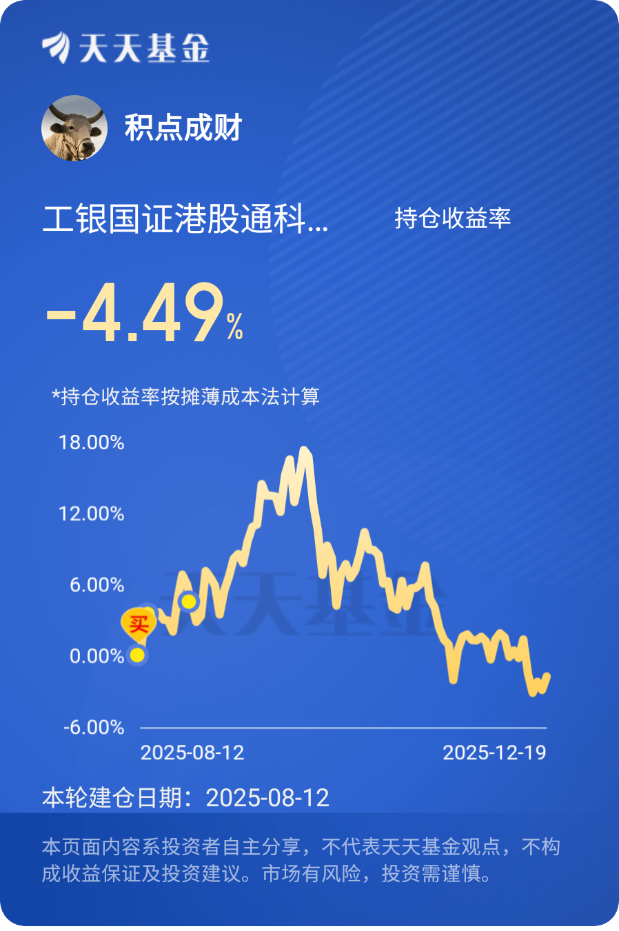 $工银国证港股通科技ETF发起式联接C(019934)$通过投资于目标ETF——国证港股通科技指数,实现对港股通科技指数的紧密跟踪,全面拥抱新经济的发展红利。我已持有,近期计划加仓,增加份额,摊低成本,静待港股科技的腾飞!