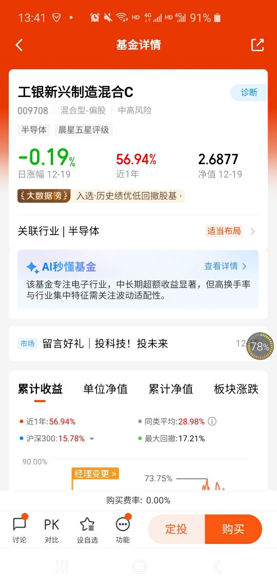 布局半导体,我看好$工银新兴制造混合C(009708)$。本基金聚焦电子行业,深度布局半导体、芯片等先进制造领域,受益于国产替代及产业升级趋势。重仓持有中芯国际、海光信息、中微公司、寒武纪、芯源微、北方华创、中科飞测等龙头电子企业。近1年收益率达到56.94%,非常优秀。晨星五星评级、专注半导体领域投资,保持关注,择机布局。