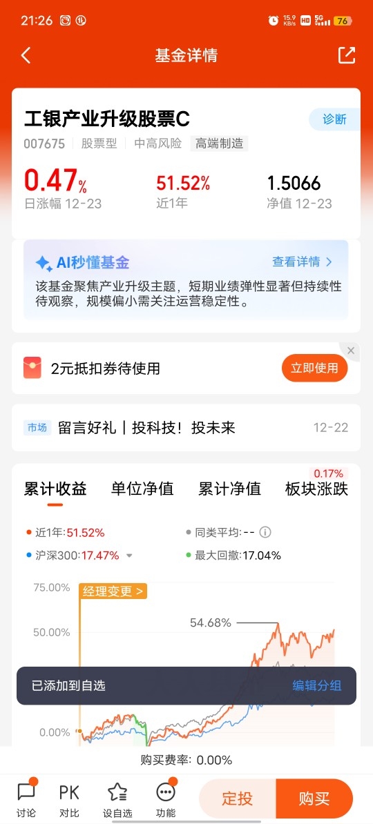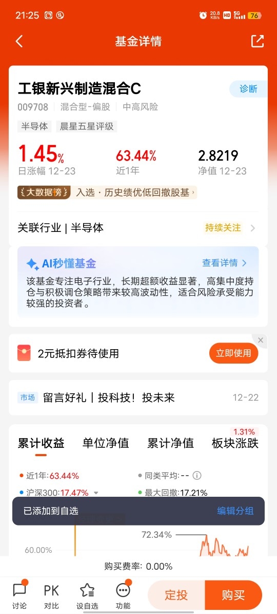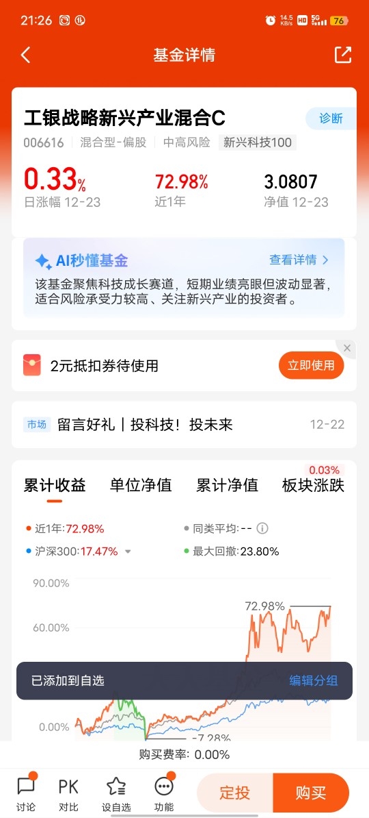 我先说说最近的情况。2024年四季度的时候,这只基金表现相当不错,净值增长率达到了15.63%。这主要得益于当时市场整体的强势,尤其是科技成长板块,像半导体、AI应用这些领域都特别火。基金经理张宇帆在那个季度增加了对半导体行业的配置,同时保持了汽车和AI应用领域的持仓。这种灵活的操作让基金抓住了不少机会。
