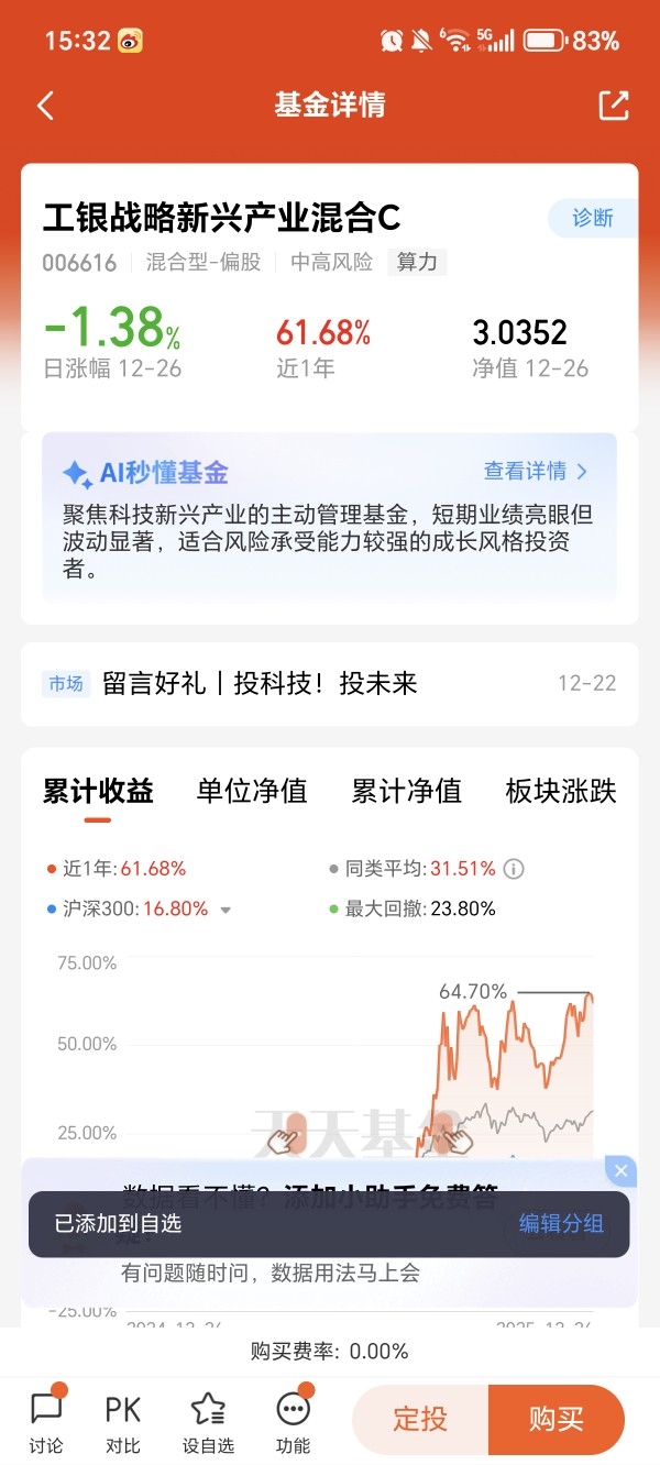 #投科技投未来#我百分百看好接下来的科技赛道,当下科技浪潮席卷各行各业,科技赛道的成长已经不是单一细分的爆发,而是全产业链的全面崛起,聊科技就绕不开核心的TMT板块,三大细分领域各有亮点、相辅相成,缺一不可。科技领域的半导体、AI筑牢底层算力与终端支撑,是科技赛道的核心根基;媒体领域的游戏、短视频、数字广告承载着内容生态与用户触达,贴近消费需求,成长活力满满;通信领域的5G基站、光模块、运营商是信息传输的“高速公路”,打通科技落地的关键链路,三大领域联动发展,让TMT板块的整体成长空间不可估量。如果不想纠结单一细分赛道的择时和选股难题,我觉得全覆盖TMT板块是最优解,既能全面把握科技赛道的每一波细分机遇,又能通过多领域布局分散风险,不用瞻前顾后担心错过某个风口,省心又稳妥。工银战略新兴产业混合就是覆盖全TMT板块的宝藏基金,精准布局科技、媒体、通信三大核心领域,打通科技全产业链布局,背靠专业投研团队挖掘各细分领域的优质标的,帮我们普通人全面把握科技时代的整体机遇,不用自己费心研究各细分逻辑,也不用纠结仓位分配,省心布局就能分享科技全赛道的成长红利,特别适合想全面布局科技赛道的投资者,我接下来就打算入手,长期持有静待收益兑现。